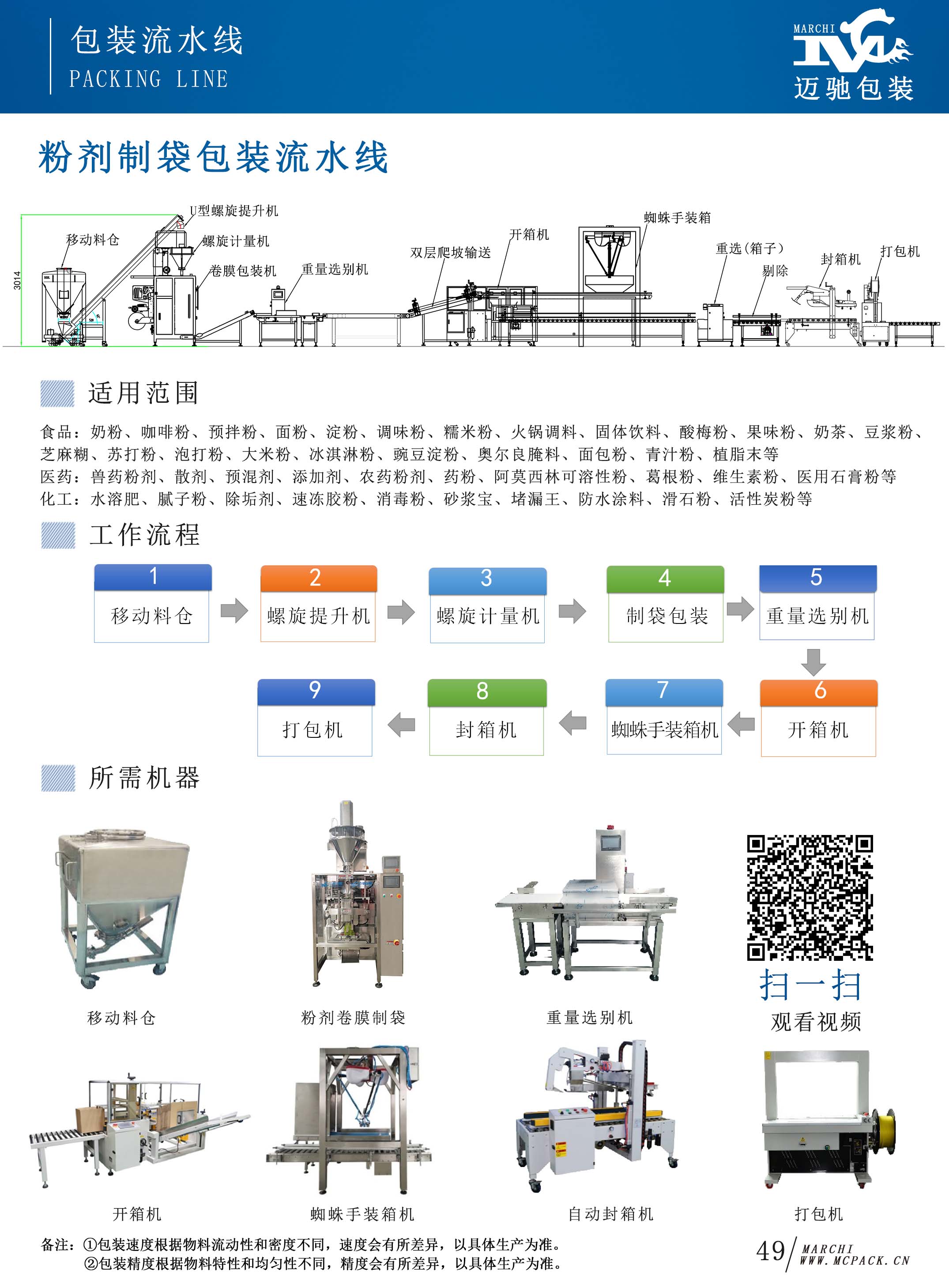 • 粉劑制袋包裝流水線