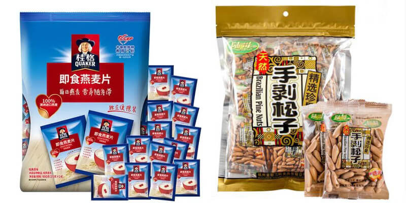 食品:麥片、大棗、休閑食品、每日堅果、糖果、豆制品、海產品、奶粉、豆粉、黑芝麻糊、藕粉、紅糖汁、益生菌等